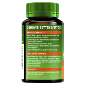 Cenovis® Garlic is traditionally used in Western herbal medicine to clear respiratory tract mucous while supporting your cardiovascular health .