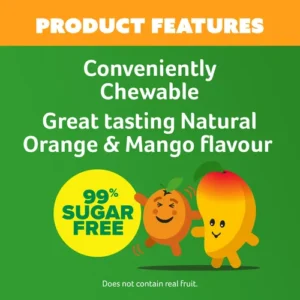 Great tasting orange & mango flavour in a fuss-free chewable tablet