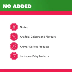 No added glucose, lactose, artificial colours or flavours, dairy products or animal derived products.