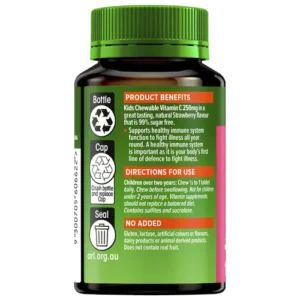 Our kids Vitamin C chewable tablets support healthy immune system function to help fight illness all year round. They also support gum health and minor wound healing in children.