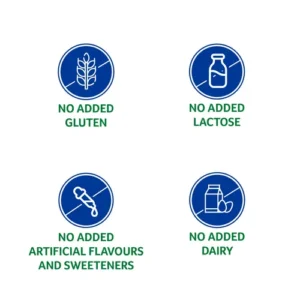 No added gluten, lactose, artificial flavours, artificial sweeteners or dairy products.
