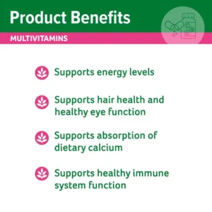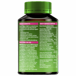 Our comprehensive women’s multivitamin formula provides the nutritional backup you need for general wellbeing without the complicated regimen. One multivitamin capsule, once a day—because you’ve got better things to do than organise a supplement schedule.